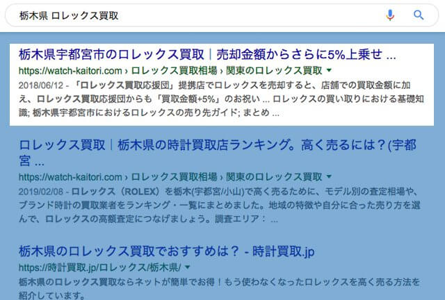 例えば「栃木県 ロレックス買取」で検索してみてください。
